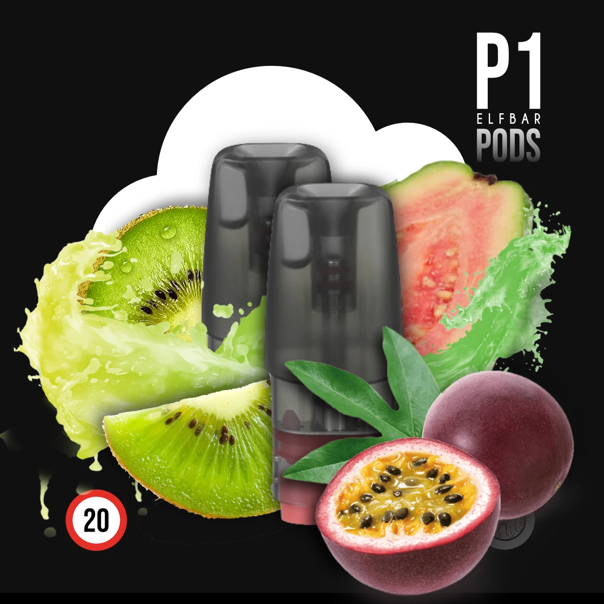 - 2x Elfbar Mate500 P1 Prefilled Pod Kiwi Passionfruit Guava – 20 mg