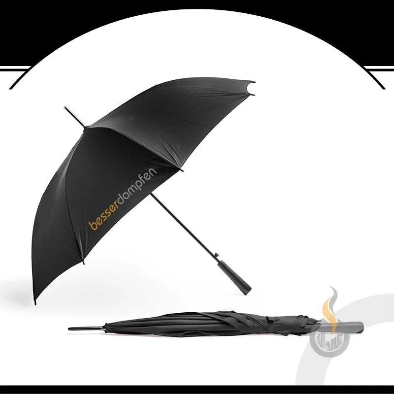 Ein Segment des Regenschirms ist mit „besserdampfen“ Schriftzug bedruckt.