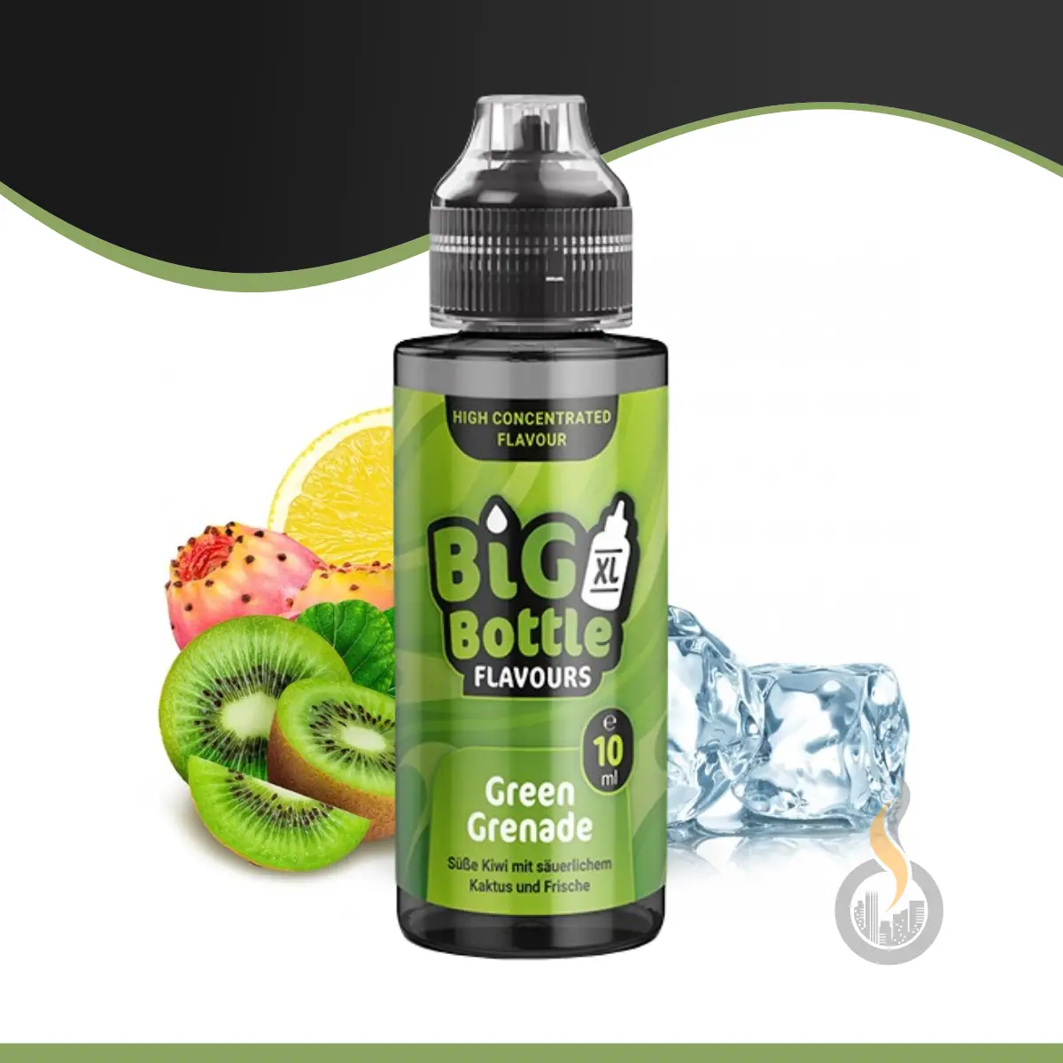 Das Longfill Aroma BIG BOTTLE Green Grenade ist ein sommerlicher Fruchtmix aus Kiwi, Kaktus und Limonen. Dazu eine Brise Frische – perfekt für den Sommer.