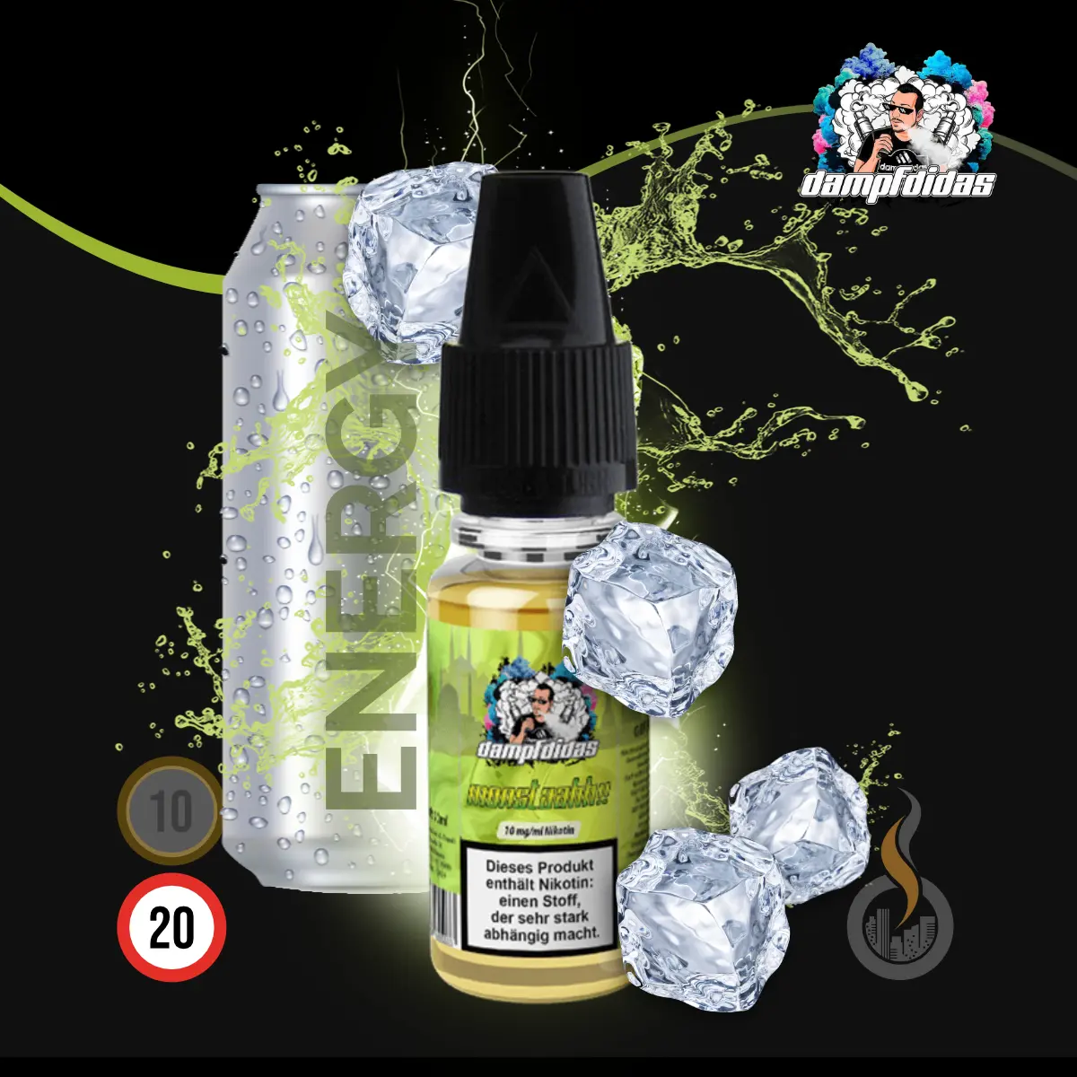 Das DAMPFDIDAS Monstaahh Nikotinsalz Liquid ist wie ein eisgekühlter bekannter Energydrink. Verfügbar in den Nikotinstärken 10 und 20 mg mit Nikotinsalz (sofern auf Lager).