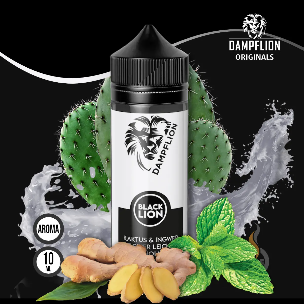 Das Longfill Aroma DAMPFLION Original Black Lion ist ein Mix aus Kaktusfeige und Ingwer. Abgerundet wird der Geschmack mit einem Hauch Menthol.