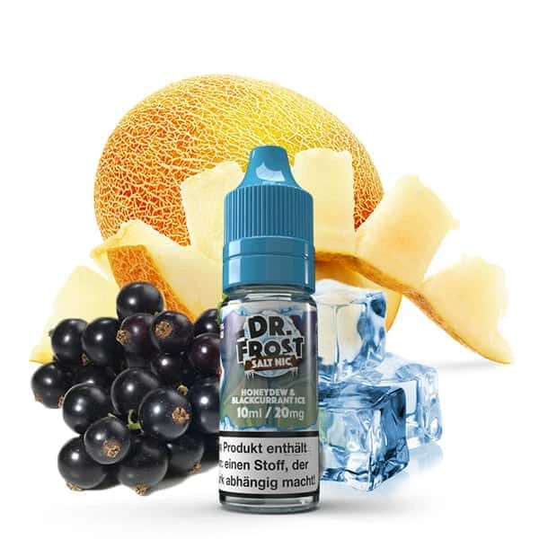 Genieße Dr. Frost Ice Cold Honeydew Blackcurrant Nikotinsalz, eine leckere Mischung von Honigmelone und schwarzer Johannisbeere. 10ml Liquid mit 20mg Nikotinsalz.