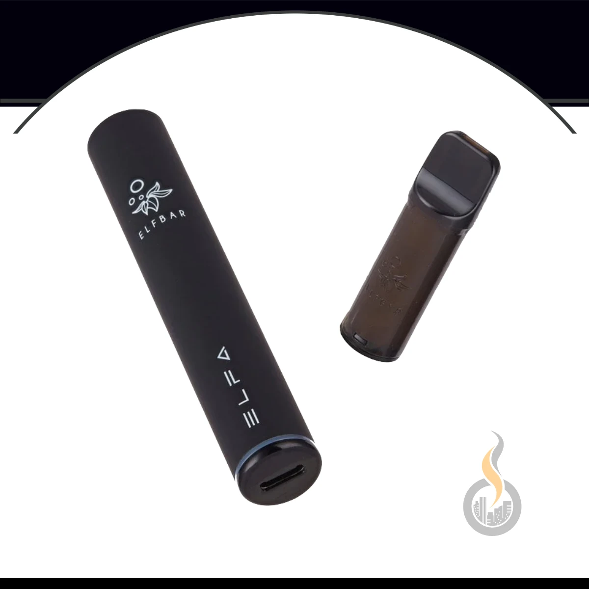 Das ELFA Pod-Kit von ELF BAR mit wiederaufladbarem 500 mAh Akku und Zugautomatik für bis zu 600 Züge/Puffs (in Verbindung mit den optional erhältlichen Pods/Cartridges in verschiedenen Geschmackssorten). Vorbefüllt mit Geschmack, 20 mg Nic-Salt und Mesh-Coil. Sehr zu begrüßen mit der Neuheit, dass sich das Basisgerät bzw. der Akku wiederaufladen lässt und nicht entsorgt werden muss. Zusätzlich designt der Hersteller ELF BAR die ELFA CP so, dass zum Basisgerät wechselbare Pods aufgesetzt werden!