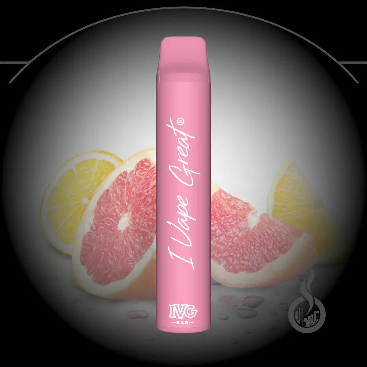 Das Pink Lemonade (mit 2ml/20 mg Nikotinsalz) in der IVG BAR Plus 800 mit dem Geschmack einer spritzigen und erfrischenden Grapefruit Limonade.
