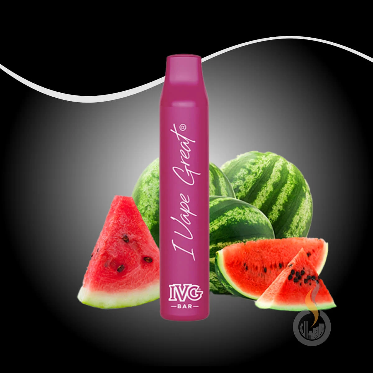 Die Einweg E-Zigarette von IVG BAR mit 500 mAh Akku und dem Geschmack Watermelon für ganze 800 Züge/Puffs.