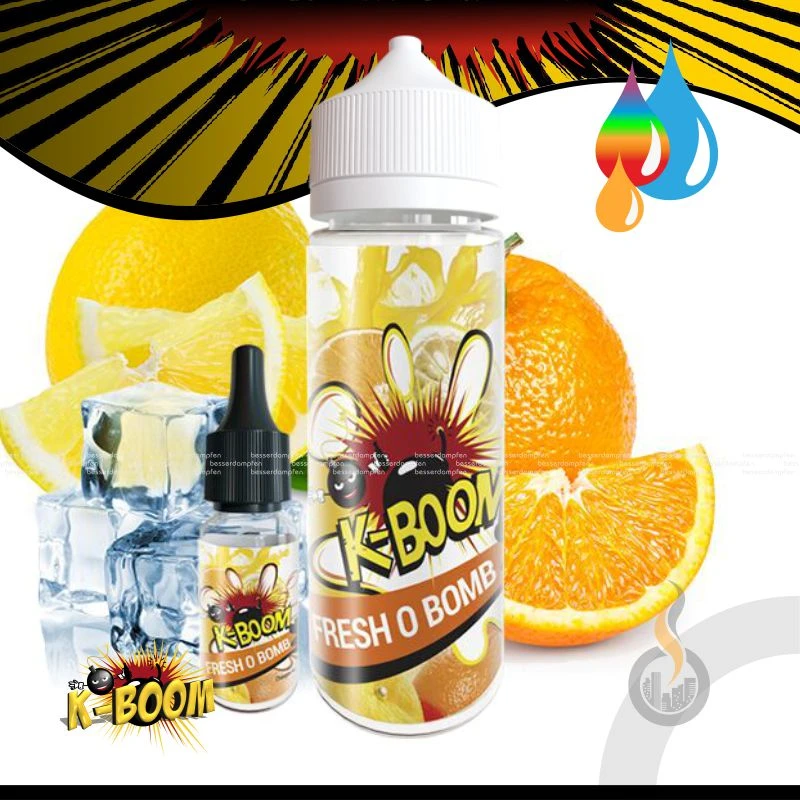 Das Longfill Aroma K-BOOM Fresh O Bomb ist ein Mix aus saftigen Orangen und spritzigen Zitronen mit der extra Power an Frische.
