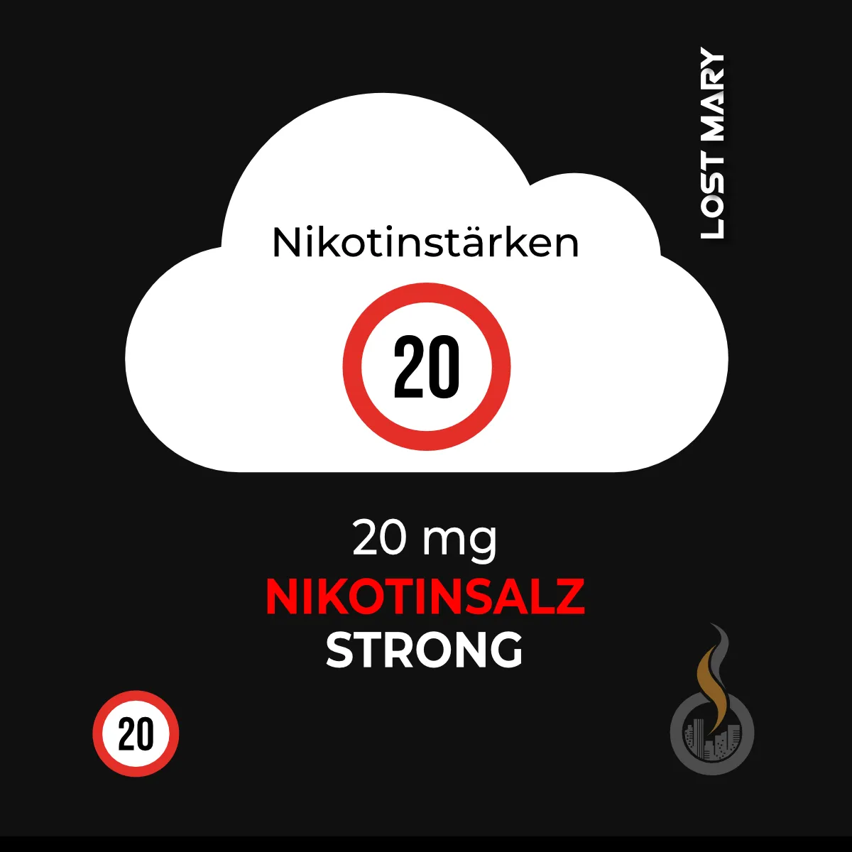 Das Blueberry Sour Raspberry (mit 2 ml mit 20 mg/ml Nikotin-Salz) in der LOST MARY BM600 CP Einweg E-Zigarette ist der Geschmack von einem Säurekick von Blaubeere und Himbeere.