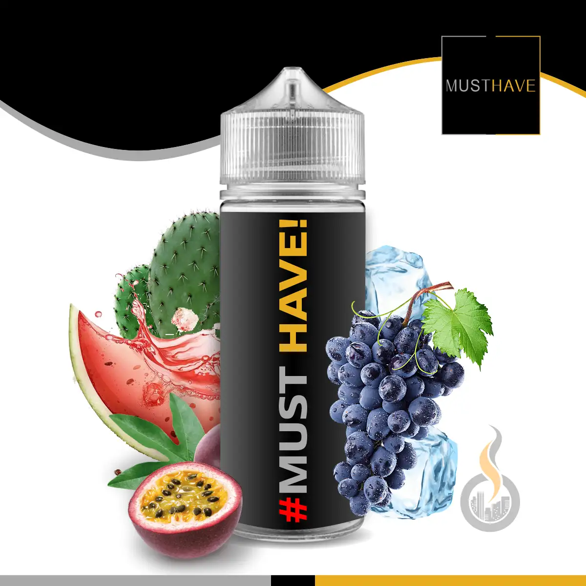 Das MUST HAVE# Longfill Aroma mit Name „#“ (Hashtag/Raute) ist ein Mix aus gefrosteter Traube, Passionsfrucht, frische Melone und Kaktus.