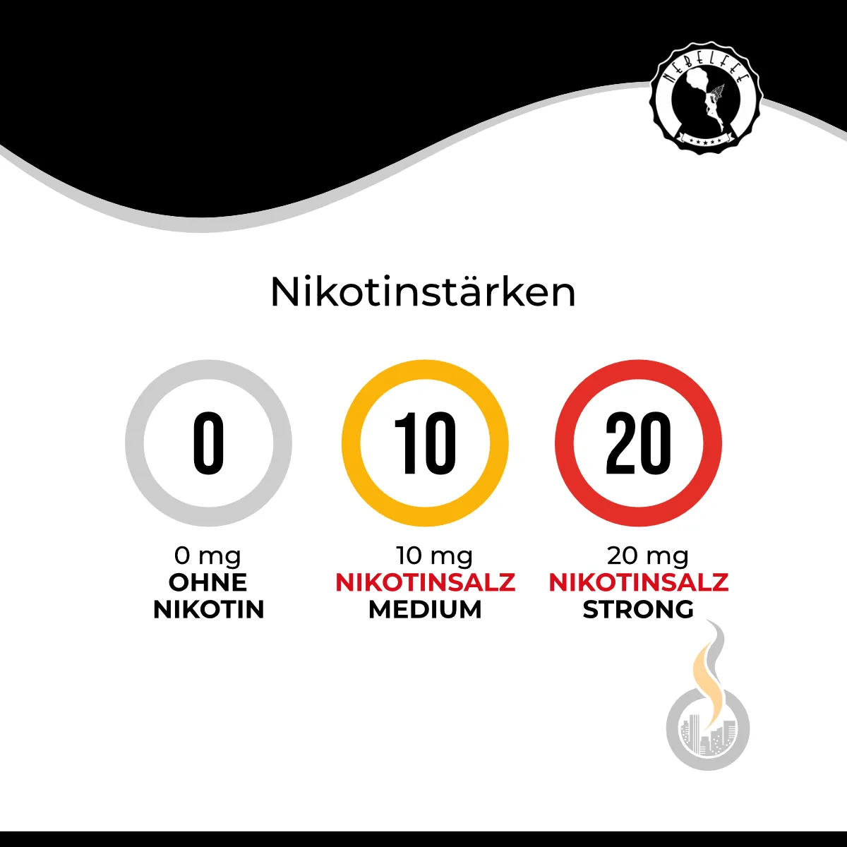 (in gewählter Nikotinsalz Nikotinstärke oder ohne Nikotin)