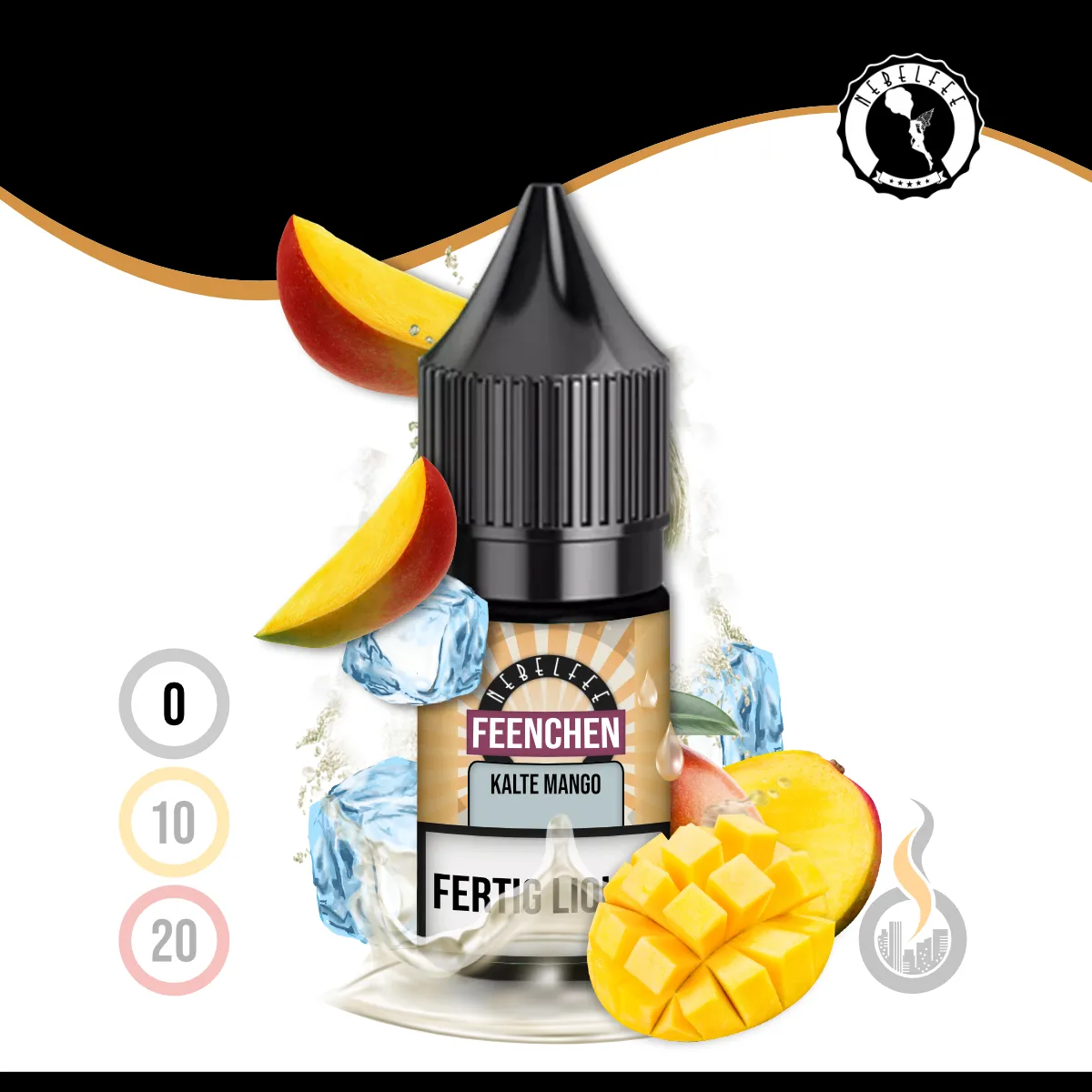 - 1x NEBELFEE Kalte Mango Feenchen Liquid – 10 ml