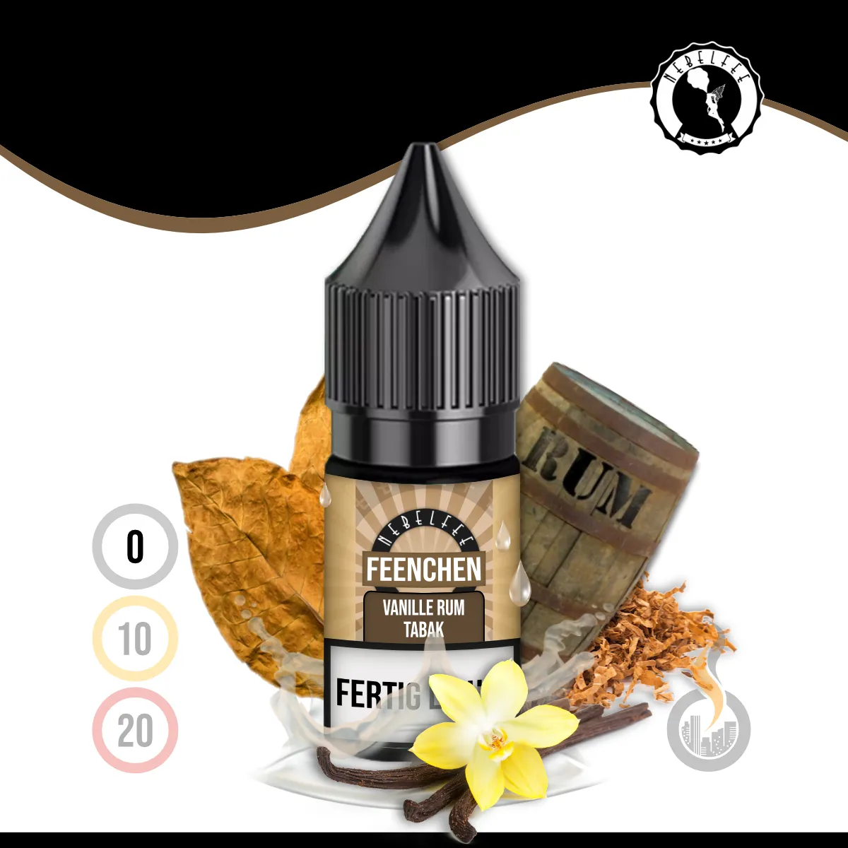 - 1x NEBELFEE Vanille Rum Tabak Feenchen Liquid – 10 ml