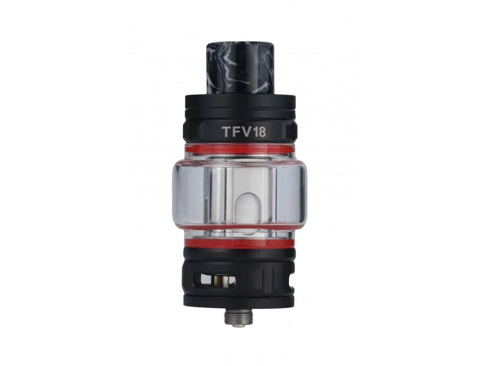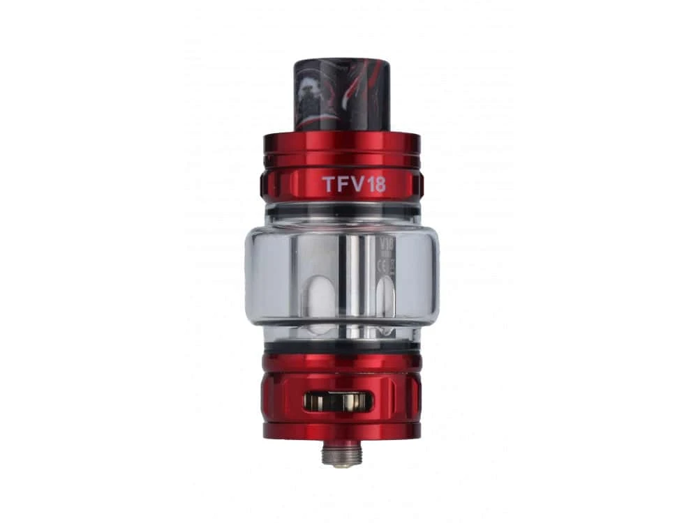 Bei dem SMOK TFV18 Verdampfer handelt es sich um einen modernen und leistungsstarken Sub-Ohm Verdampfer zum direkten Lungendampfen, der mit einer besonders dichten und hohen Dampfentwicklung sowie mit sehr guten Geschmackseigenschaften überzeugt.