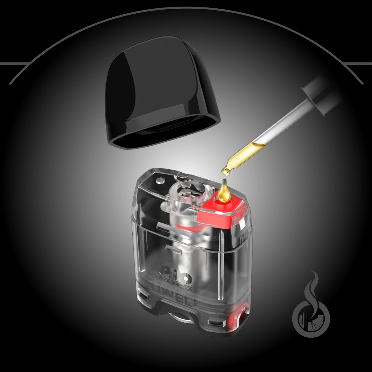 Die Pods fassen ganze 2 ml Liquid und können einfach über ein Topfill befüllt werden. Hierzu einfach das Drip Tip seitlich verschieben und über den Fillport das Liquid einfüllen. Die gefederte Füllöffnung verschließt sich nach dem befüllen wieder automatisch.