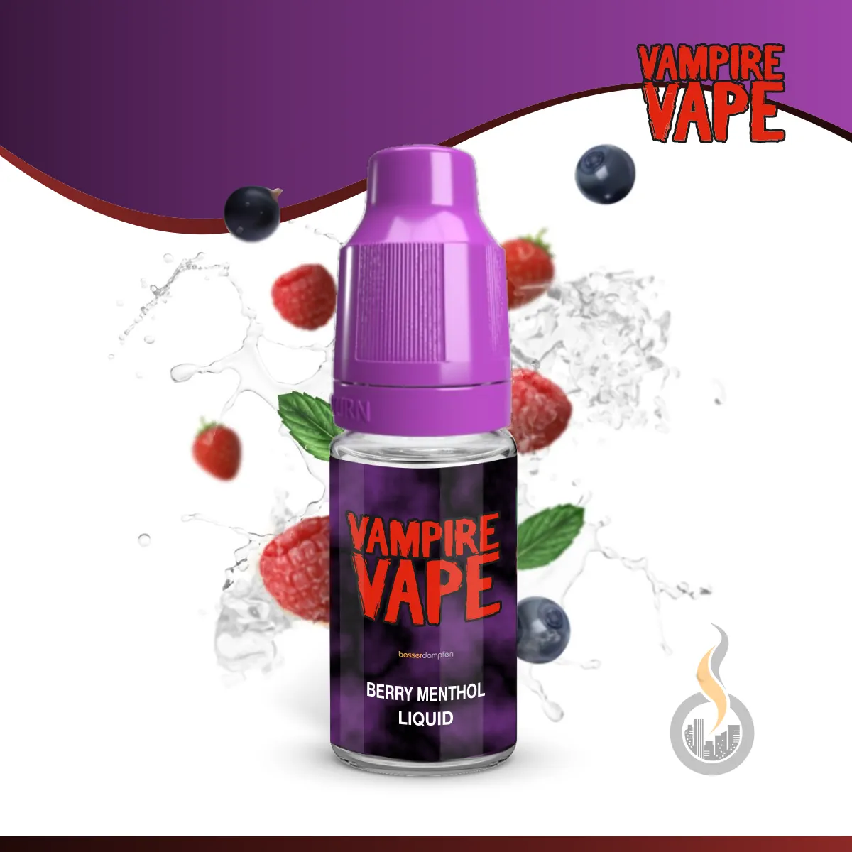 Das VAMPIRE VAPE Berry Menthol Fertig-Liquid (mit oder ohne Nikotin) ist ein saftig-frischer Liquid-Mix aus Beeren und zerkleinerten Menthol Kristallen.