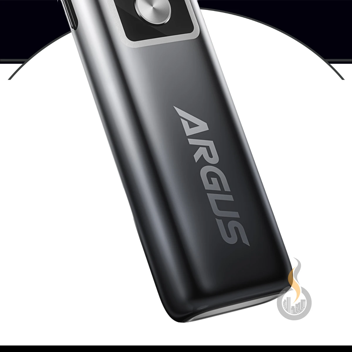 Der 2 ml fassende Argus Pod Tank kann einfach vom Gerät abgezogen werden, da dieser mittels Magnetismus befestigt ist. Die Luftführung zum Coil wird unter dem Pod geführt, dies sorgt für eine direkte Anströmung und guten Geschmack. Zudem kann die Luftzufuhr mittels Schieberegler seitlich eingestellt werden. Befüllt wird der Tank seitlich. Die Pods haben die ITO Coils bereits verbaut.